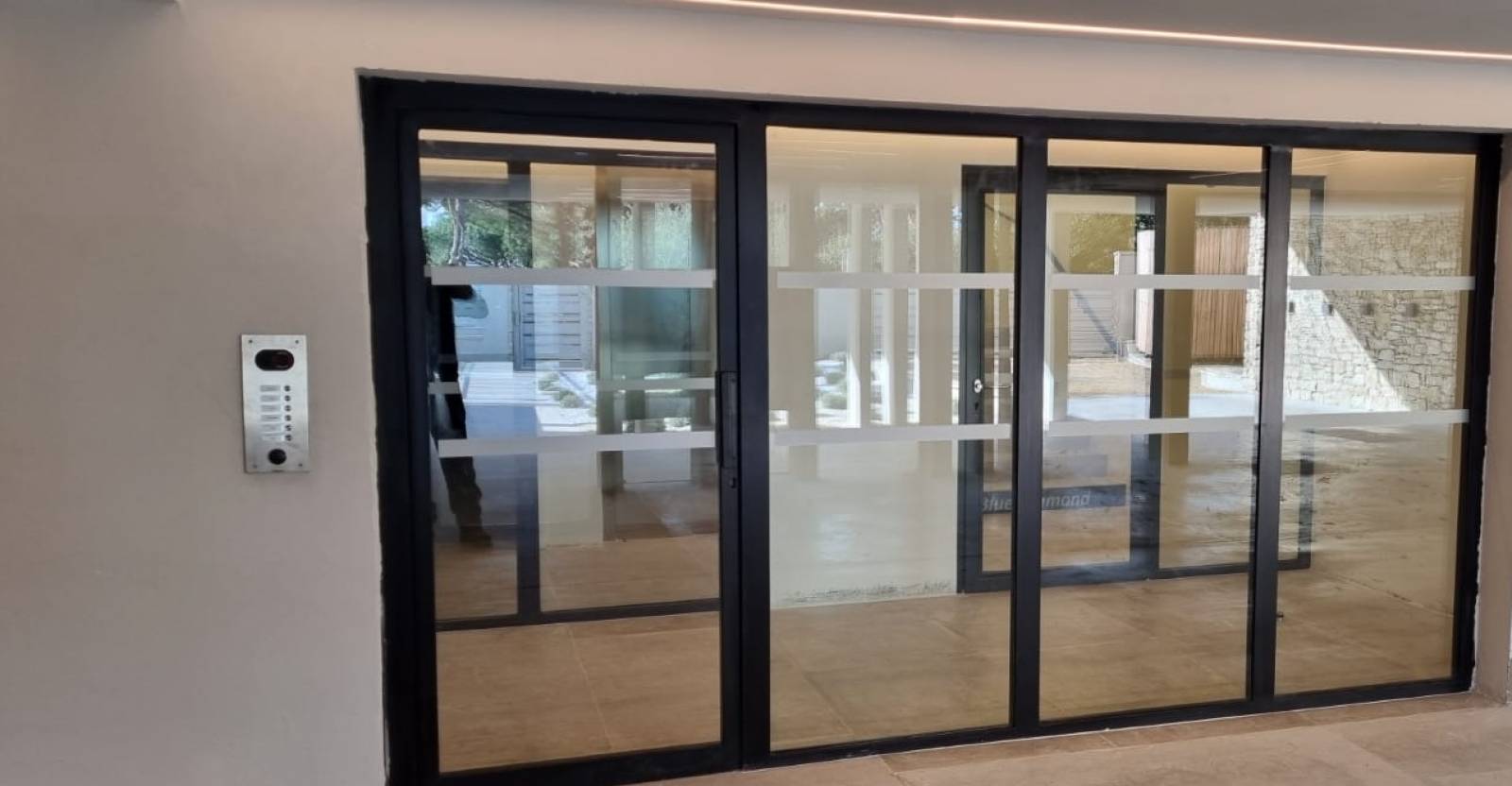 À Vaugneray, ASMT DESIGN a réalisé une verrière sur mesure avec vitrage feuilleté et porte vitrée, alliant style atelier, isolation acoustique et finition thermolaquée gris foncé.