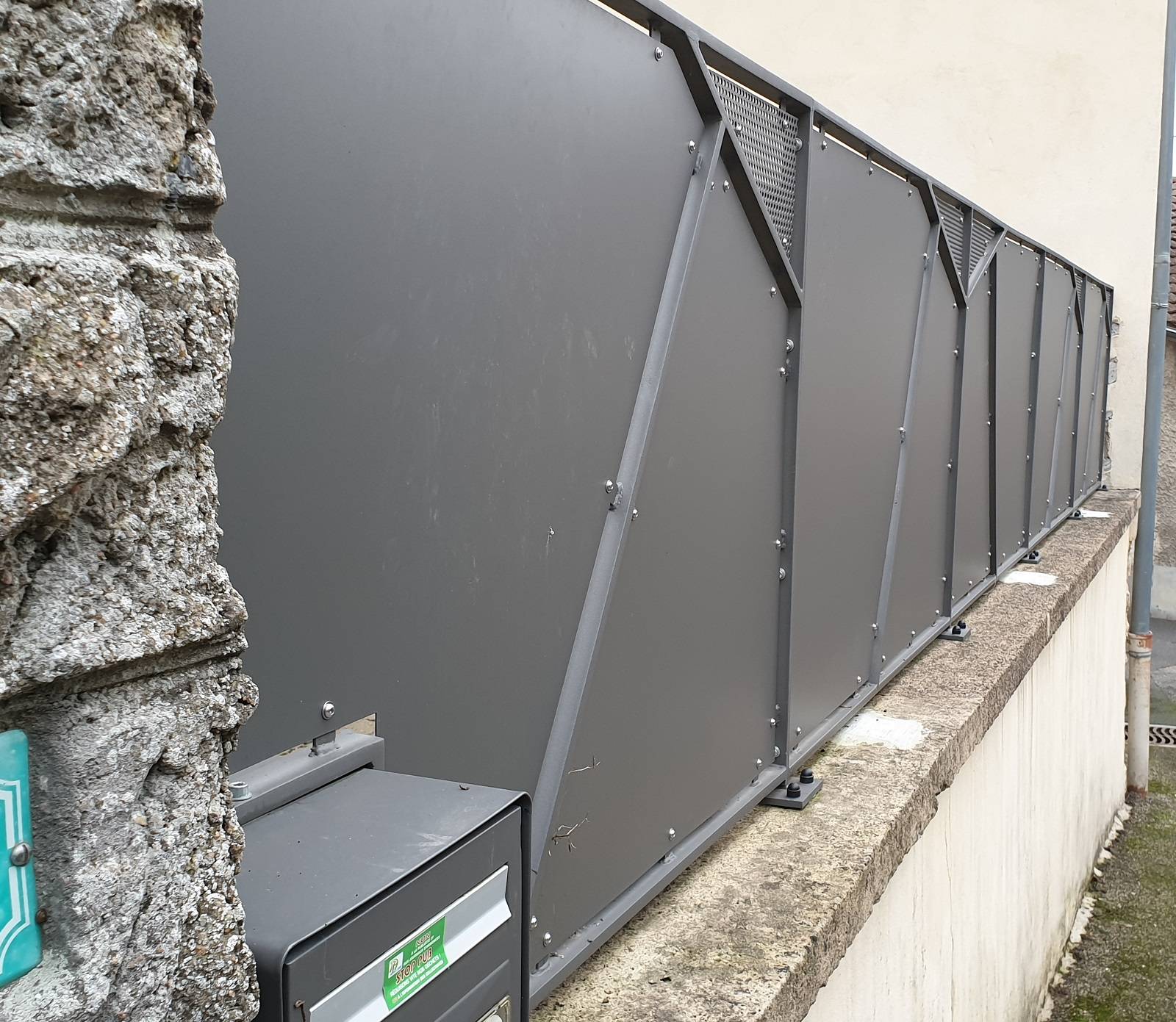 ASMT Design a su trouver la solution esthétique pour garder une continuité entre le portail et le pare-vue.