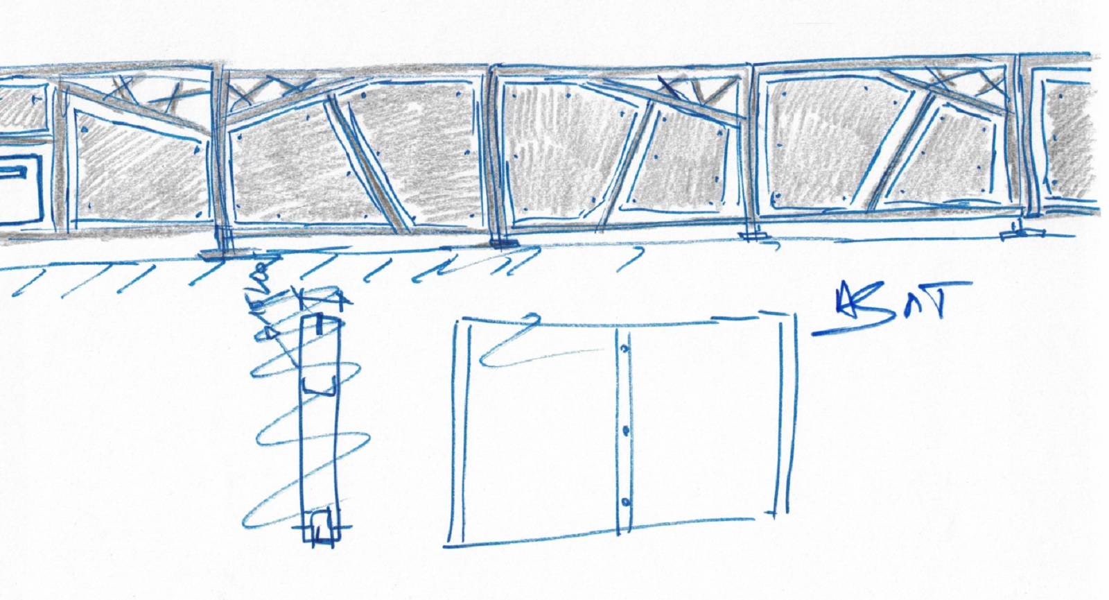 L'ensemble a été assemblé en tôle et tube acier avec des touches de tôles perforées pour casser la surface pleine.