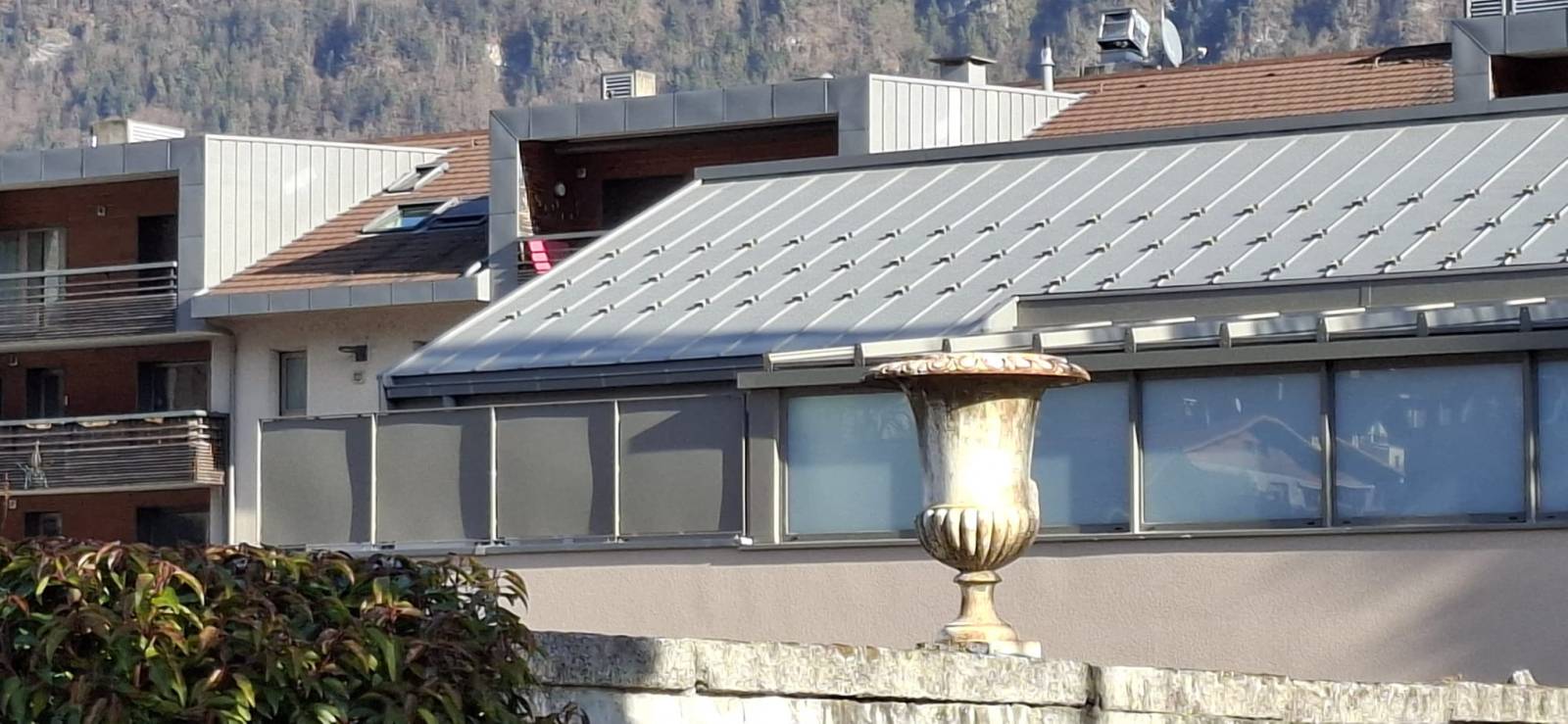 Enfin, un pare-vue métallique thermolaqué a été posé sur muret pour sécuriser et structurer les espaces extérieurs du logement.