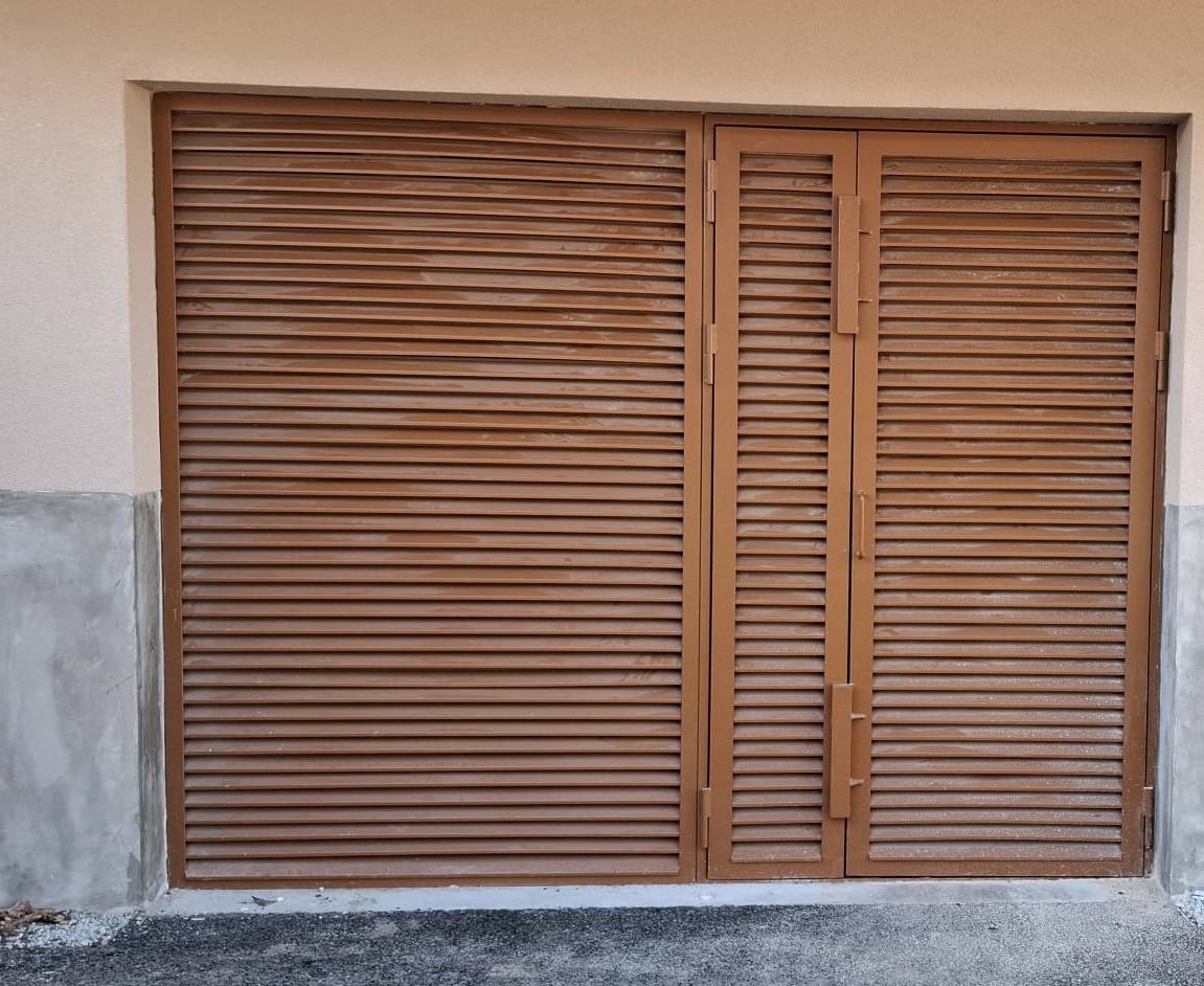Une porte sectionnelle industrielle motorisée, isolée et sécurisée, a été installée afin d’optimiser l’accès et le confort au quotidien. À l’étage, une main courante acier sur mesure a été réalisée pour accompagner la pente de l’escalier, avec une finition vernie noire.