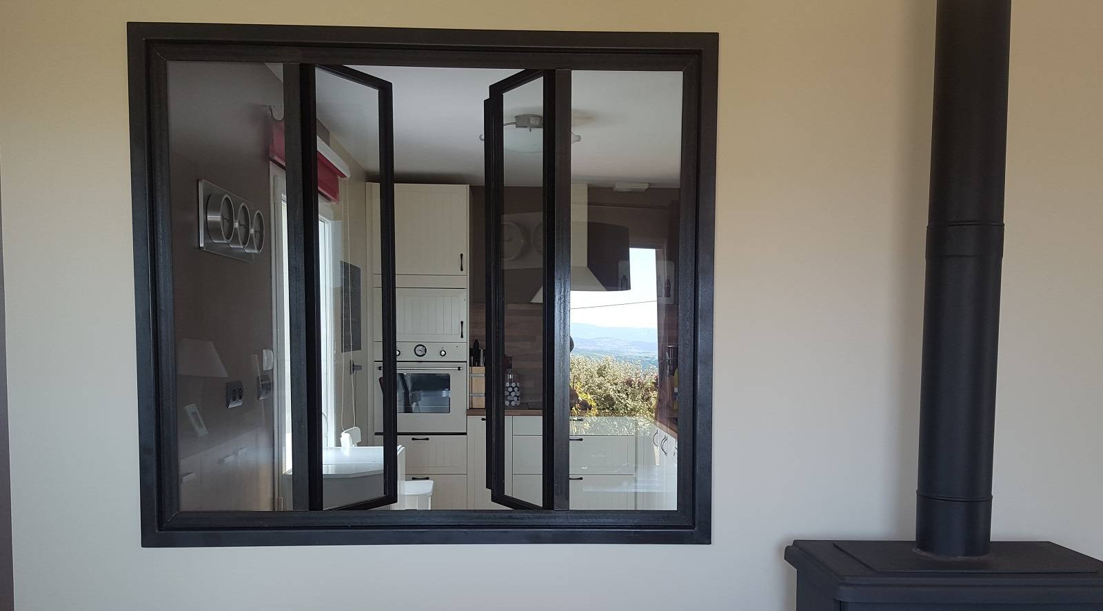 ASMT Design a conçu réalisé et fabriqué une verrière avec ouvrant pour passe plat entre les 2 pièces principales de l'habitation située à Letra en plein cœur du Beaujolais.