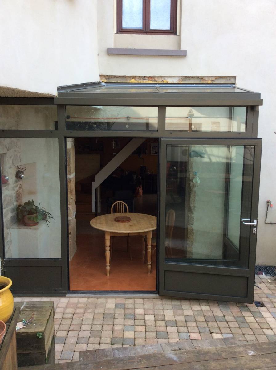 Montants et traverses supplémentaires pour partitionner la façade nord ou décaler la porte selon vos contraintes, toujours dans le respect des lignes esthétiques de l’ensemble.