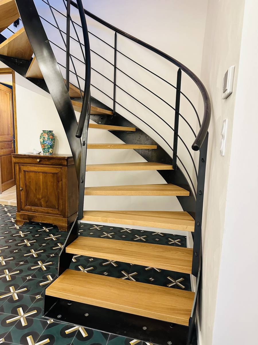 En effet, réaliser un double limons cintrés n’est pas très courant et techniquement cela a été complexe à réaliser, mais l’équipe d’ASMT DESIGN a su relever le défi et le résultat en valait la peine !