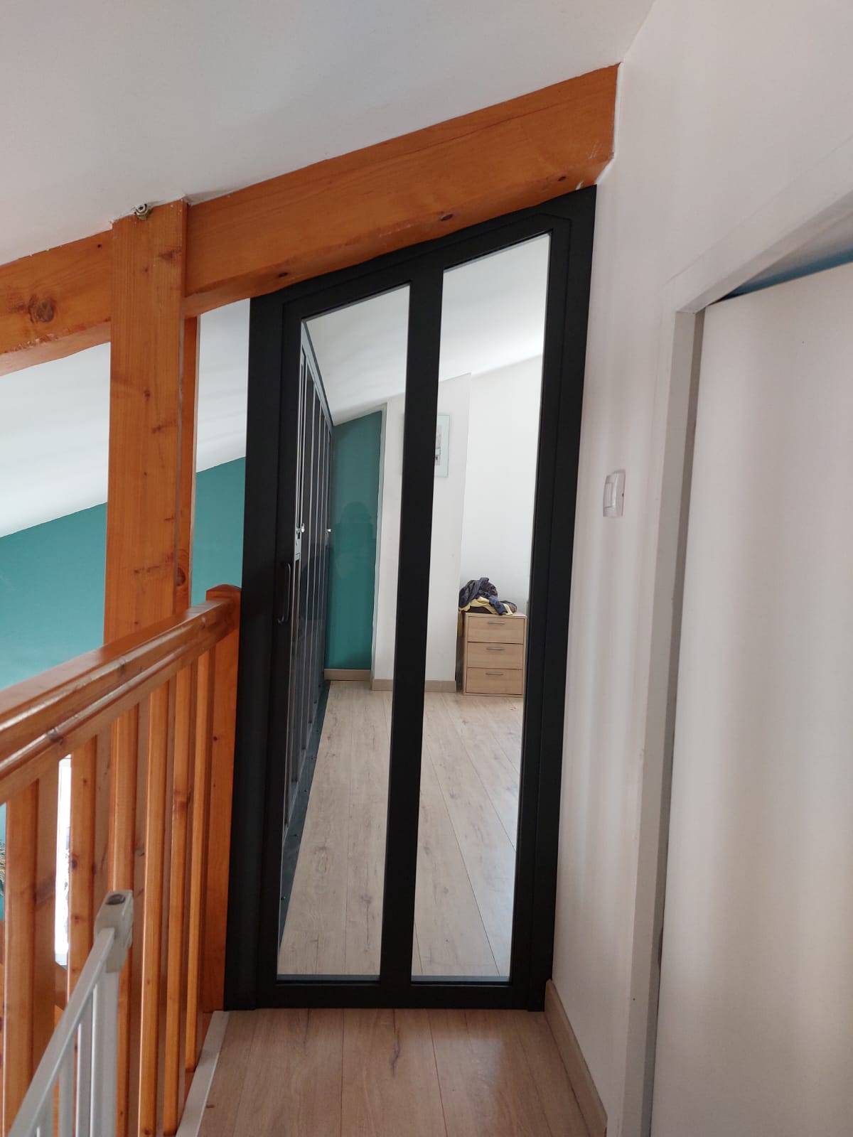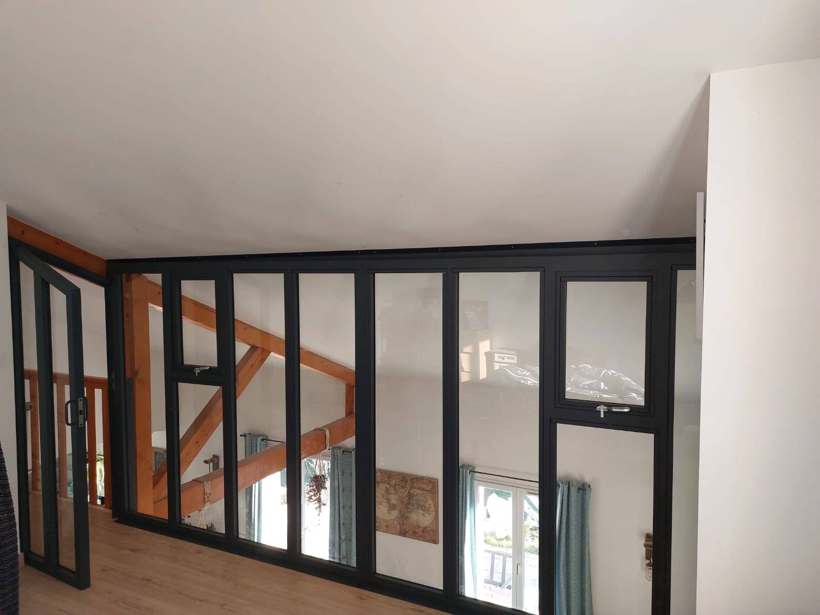 Cette verrière avait pour vocation de remplacer une barrière afin de fermer l’espace de la mezzanine donnant sur le salon. L’idée étant de garder la profondeur et la hauteur sur plafond en vitrant. Notre cliente avait imaginé un verre sécurité et qui soit isolant au niveau acoustique. Son projet comportait également une porte vitrée afin de fermer cet espace pour en faire une chambre.