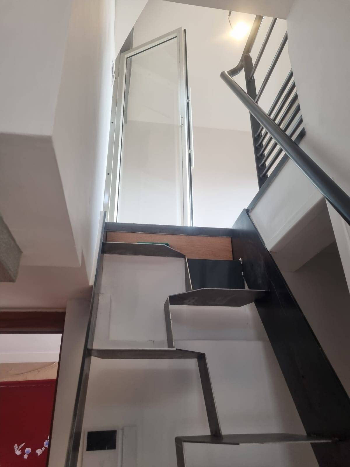 Pour commencer, ASMT DESIGN a d’abord fabriqué une échelle meunière en acier, qui a été découpé au laser et qui a été soudé au TIG sur place.