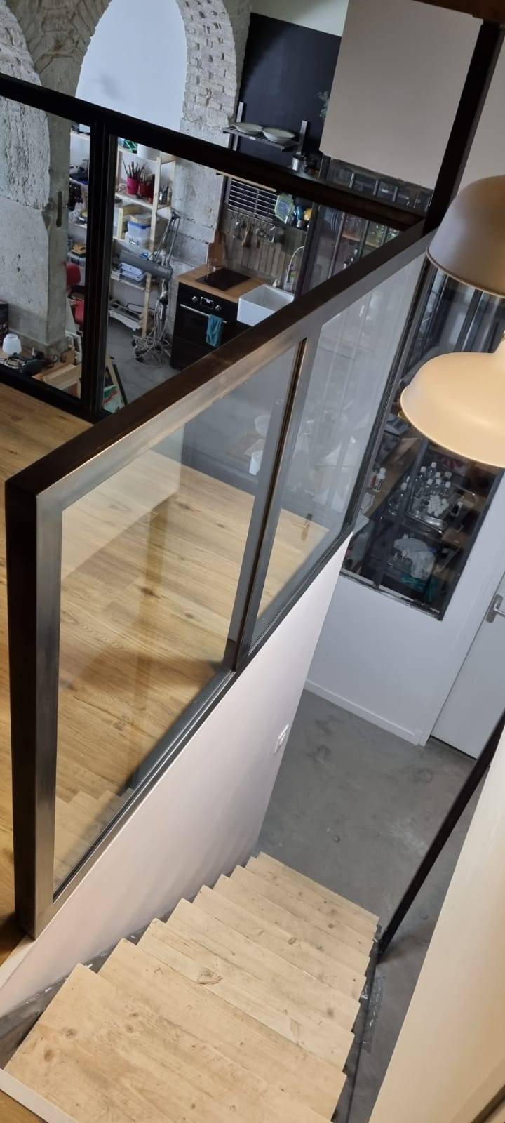 Nous avons donc proposé un garde corps acier verre, constitué de 3 pans de verre feuilleté ;