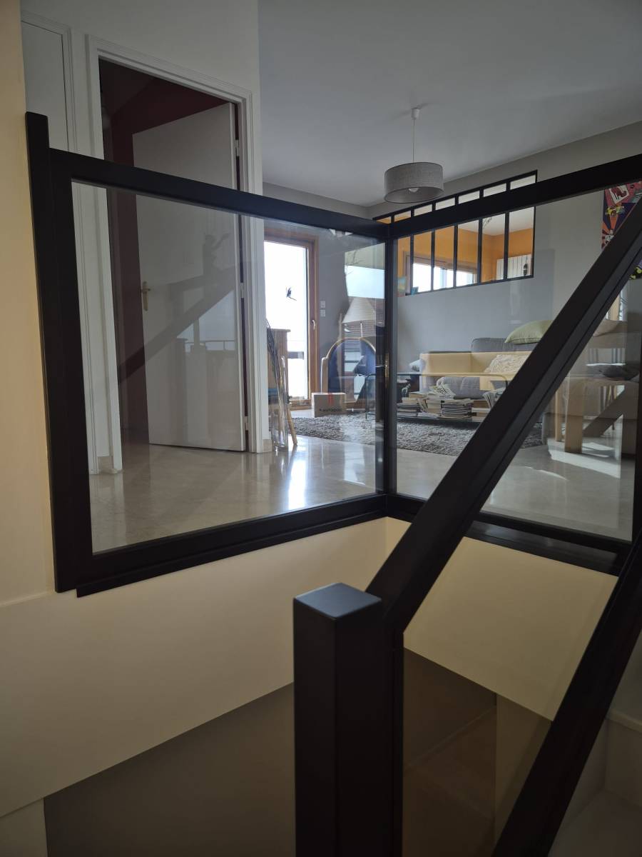Installation d'un garde corps d'escalier sur la hauteur complète du limon à Mions